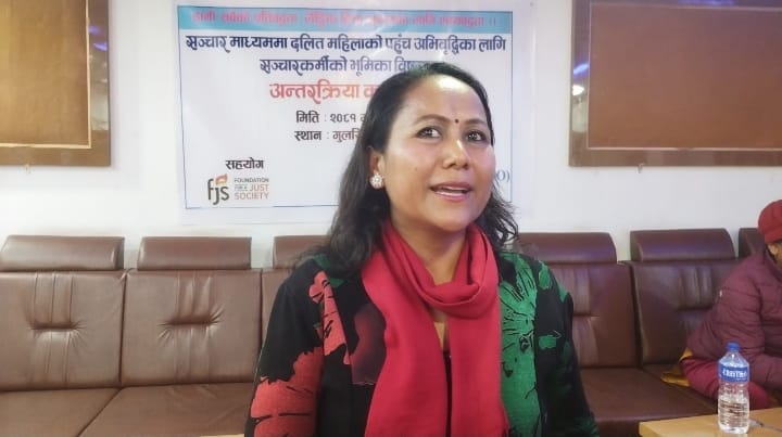 उक्त कुरा उहाँले संचार माध्यमा दलित महिलाको पहुँच अभिबृद्विका लागि संचारकर्मीको भुमिका विषयक अन्तरक्रिया कार्यक्रममा बताउनु भएको हो ।